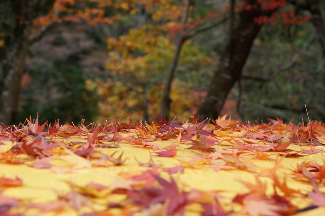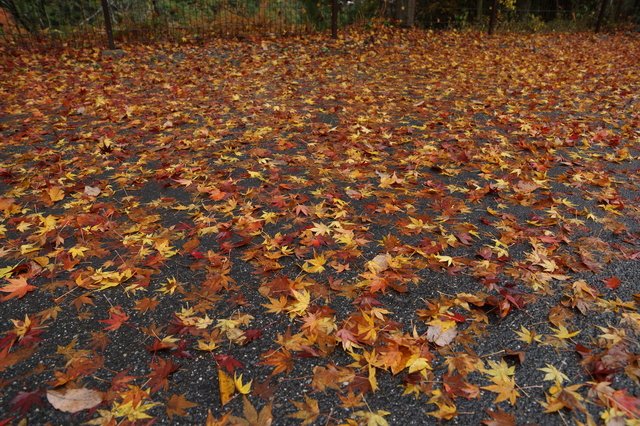 道の駅の裏手の紅葉。雨が降り、一面に紅葉の絨毯が広がりました。