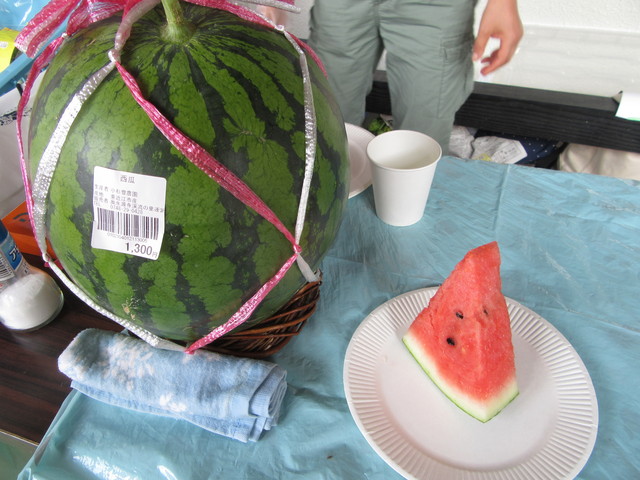 甘くておいしいスイカが山里市場で人気でした