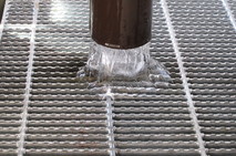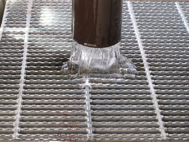 パイプから流れる雪解け水が凍っていました。