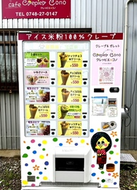 「アイスクレープ」は、店舗駐車場に設置してある冷凍自販機でも、24時間お買い求め頂けます。